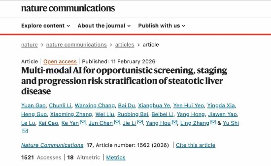 中国医科大学附属盛京医院影像科副主任石喻表示,受限于大众认知不足、专用检查费用高,脂肪肝风险分层是长期以来的难题。MAOSS模型能利用体检、门诊、急诊等场景产生的大量平扫CT影像,在不额外增加患者成本的同时,减少高风险脂肪肝漏诊,为早期干预提供预警信号,实现慢性肝病管理“关口前移”。“未来,患者可能在基层医院或体检机构就获得来自AI的高风险脂肪肝提醒,真正实现早发现、早干预、早逆转。”