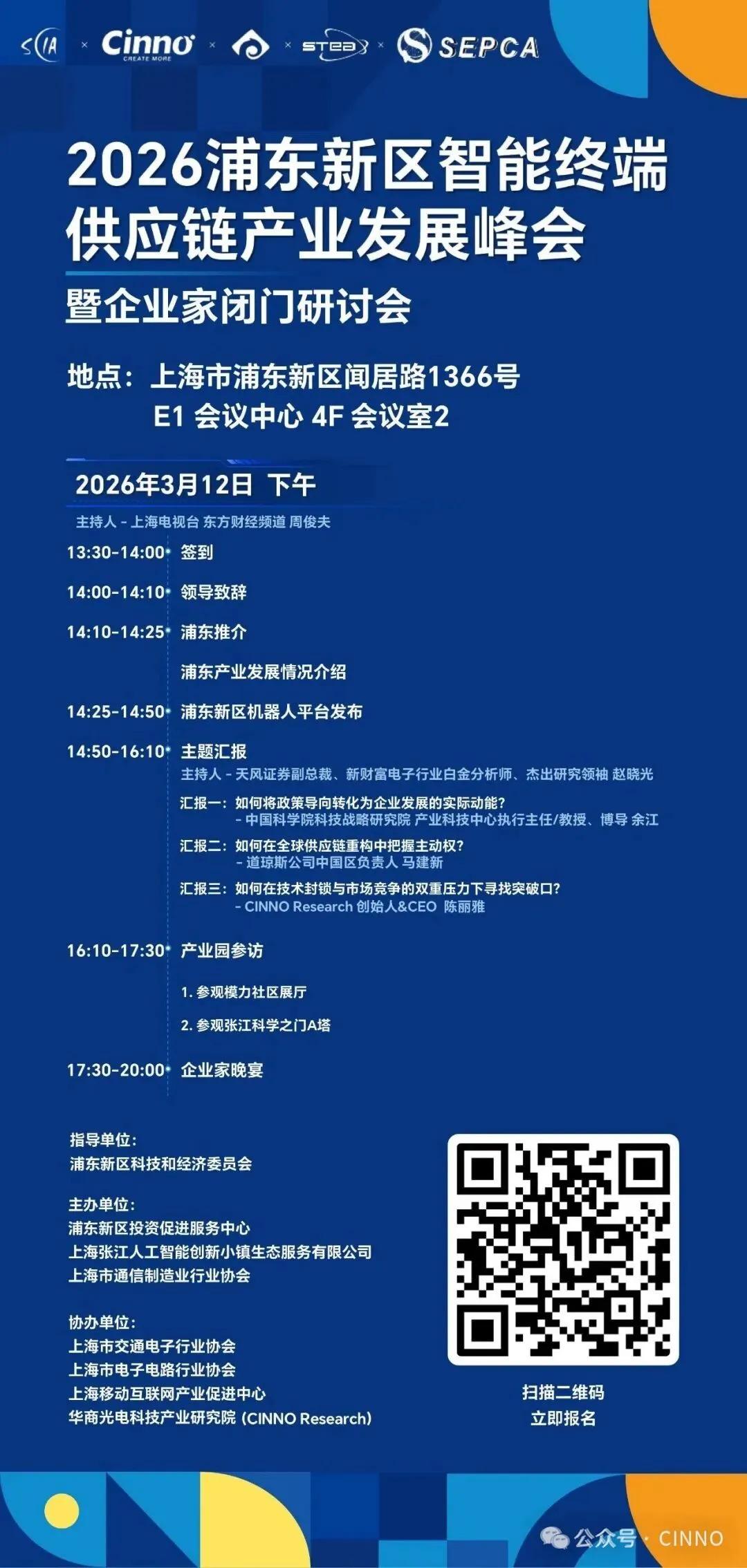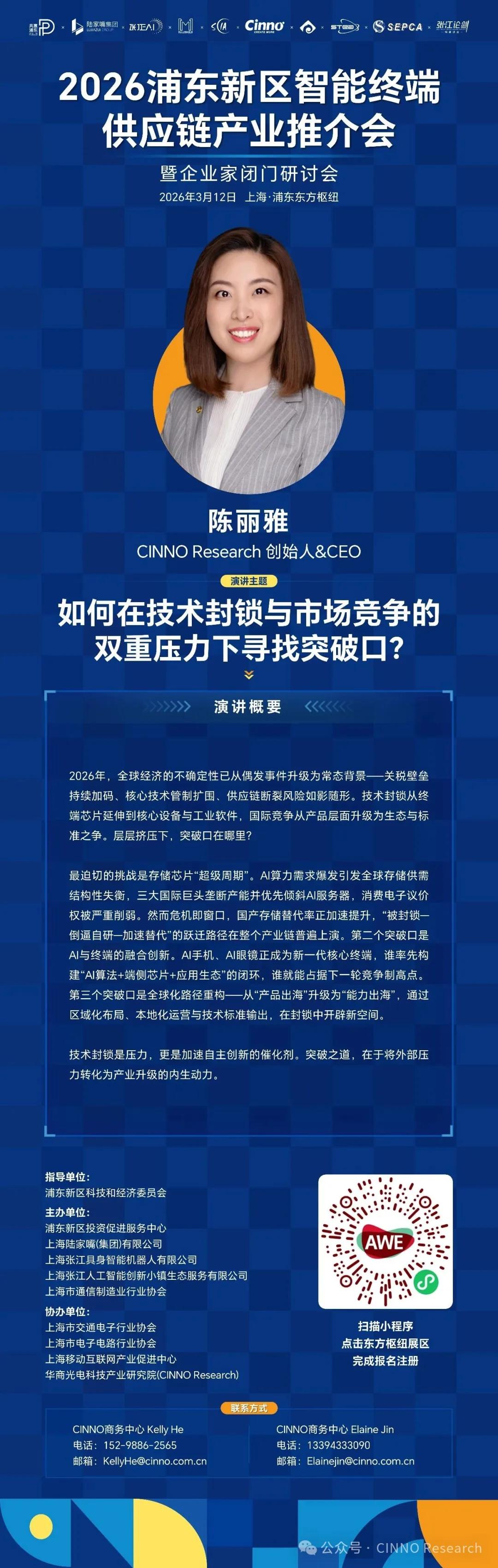 值此 AWE2026(中国家电及消费电子博览会) 盛大举办之际,依托这一全球顶级展会的影响力与“一展双区”的创新平台,“2026浦东新区智能终端供应链产业发展峰会暨企业家闭门研讨会” 将于 3月12日 在 上海东方枢纽商务合作区温暖启幕。